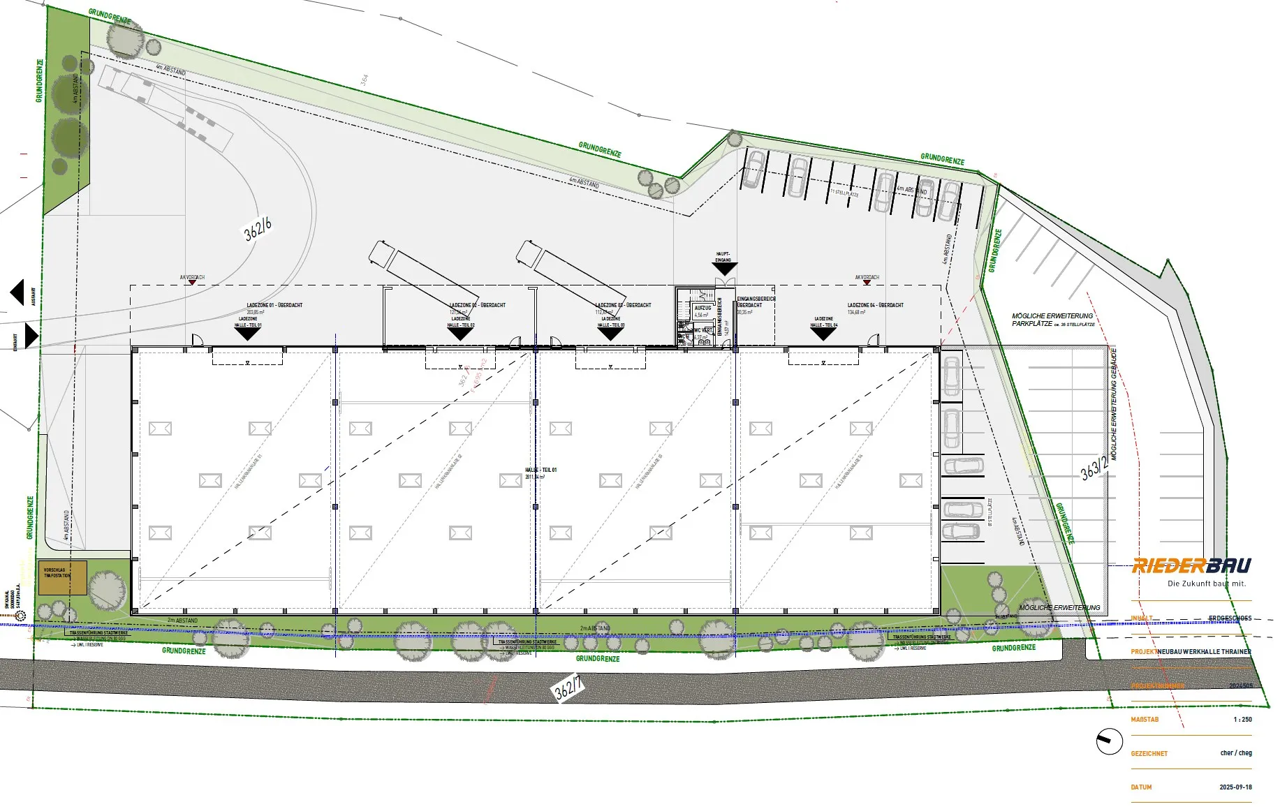 - Halle+ Büro bis zu 4-mal teilbar, mit 4 Rolltoren